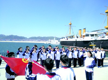 为加强中学生入团仪式感,增进学生对甲午历史的了解,增强民族使命感,威海市实验中学南北校联合鲸园街道办事处、定远舰景区共同举行“中国梦·少年强——实验中学入团宣誓仪式”。