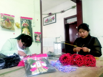 在潘若苓的家中,院子里已经堆集了不少已经装箱的成品工艺品。在里屋的工作室里,潘若苓和其他几位工友忙着赶工。“这批货已经做了快一个月了,厂家那边催得急,月前得全部做完。”按照潘若苓的说法,从江苏工厂那边得到消息,今年的订单要比往年多一些,这样,大家伙今年的收入肯定又能增加了。