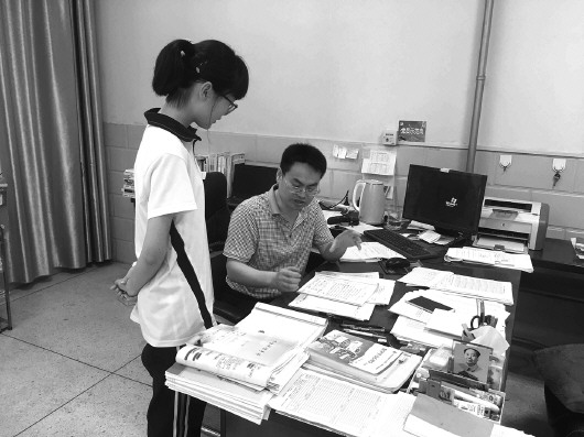 德州二中高三年级主任张文刚在为学生做导师制辅导。