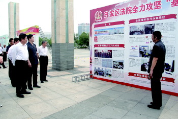 ▲与会人员参观“基本解决执行难”工作展板。