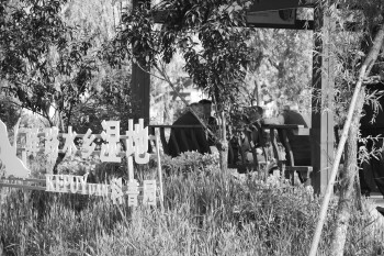 大流店村民在湿地公园下棋、聊天。 本报记者 孙璇 摄
