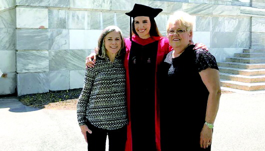 参加完博士毕业典礼后,吉尔默与母亲、老师托恩辛(右)合影。