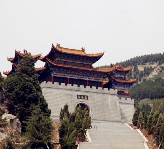 经常坐动车来往于京沪高铁线上。每当动车驶过长清张夏火车站时,透过车窗南望,就见通明山下的深山密林中,隐露着一个金碧辉煌的建筑群。虽然画面一闪而过,但险峻的山峰、苍翠的松柏、金黄的琉璃、恢弘的气势,还是在我的脑海里留下了深刻的印象。这是一个怎样的建筑群呢?我问对济南周边山区古建筑比较熟悉的朋友董元龙,他说,“这是义净寺”。