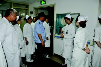 市北区人民医院为了更加贴近实战、更加注重实效,日前院领导率领保卫科全院逐个科室进行消防培训和演练。从门诊楼到住院一部、住院二部,再到医技和后勤各科室,现场集合培训,现场实地操练。保卫科主任现场逐一指导当班工作人员操练干粉灭火器“一提、二拔、三握、四压”四步法和消防栓“一启、二取、三连、四开”四步法,并且模拟紧急启动消防应急预案等。该院通过拉网式地进行现场培训和实地演练,不遗留死角,参训率提高,进一步提高了全体工作人员应对突发火灾的实战能力。