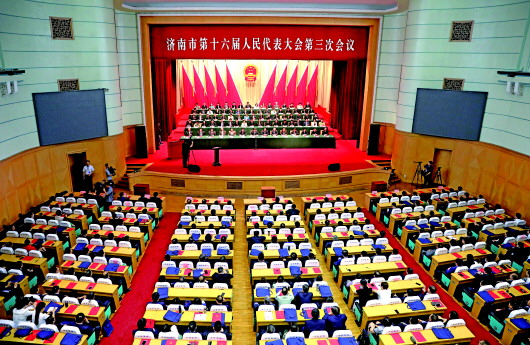 济南市第十六届人民代表大会第三次会议闭幕大会现场。
