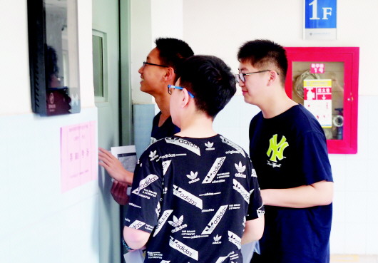 10日下午,山师附中考点,考生们纷纷提前看考场。 本报记者 周青先 摄
