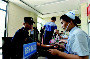 6日下午,由济宁市公安局、市卫计委、市第一人民医院组成的“健康行 我爱你”公安基层健康巡诊队,赴济宁高新区公安分局开展巡诊活动,为民警进行体检、问诊。民警们表示,将进一步振奋精神,奋力拼搏,更好的履行职责、干好工作,为维护全区社会政治稳定做出积极的贡献。