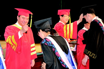 为毕业生颁发学位证书。 本报记者 李德领 摄