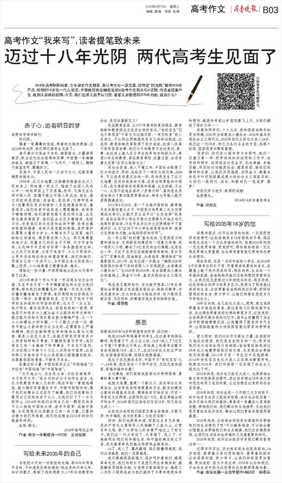 第S03版:今日泰山·高考作文