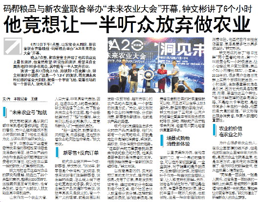 6月13日下午1点整,山东省会大剧院,新农堂联合齐鲁晚报·码帮粮品举办“A20未来农业大会”开幕。
