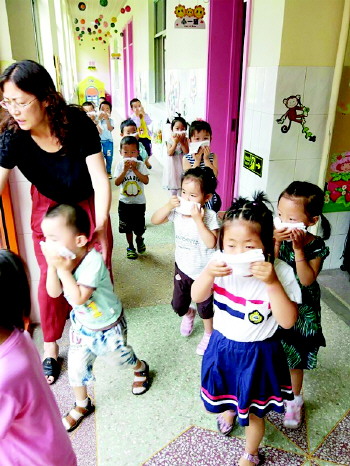 消防演练活动 为进一步提高幼儿园全体师幼的消防安全意识,掌握逃生自救方法和路线,近日,沂源县鲁山路幼儿园举行了消防安全疏散演练。(张宗叶)