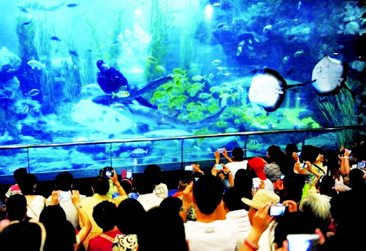 夜游青岛,海底世界是首选。从7月6日至8月26日,青岛海底世界开放暑期夜场。游客可选择夜游海底,避开白天的炎热和喧嚣,还可以享受门票巨惠、免费班车等福利。此外,景区晚上还开通青岛海底世界到五四广场观看灯光秀的“夜游青岛”专线班车,班车17:30至19:30流水发车,游客凭海底世界门票可免费乘坐,方便快捷地前往五四广场。