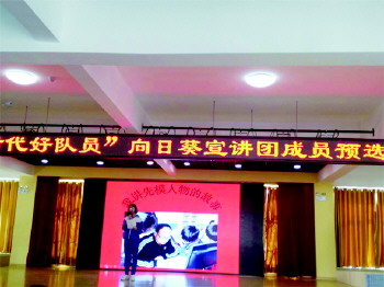 参选向日葵宣讲团成员 近日,沂源县张家坡中心学校学生,参加向日葵宣讲团成员预选赛。宣讲该校王增成老师见义勇为勇救落水儿童的事迹。(王均升)