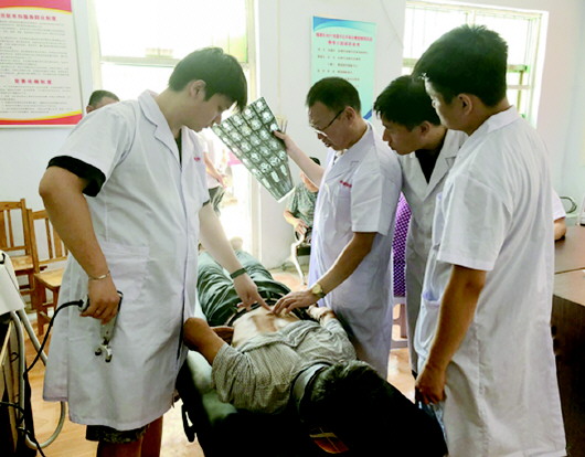 省体育局康复医疗专家组为村民义诊。
