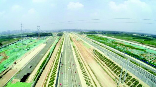 石济客专(左)与济青高铁(右)并行,将一同引入济南东站。 本报记者 刘飞跃 摄