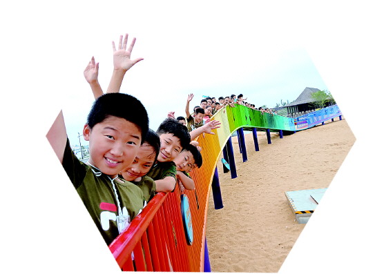 ▲在龙湖北中国海公园,营员享受沙滩时光。本报记者 尹明亮 摄