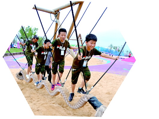◤营员们在北中国海公园开展拓展训练。 本报记者 尹明亮 摄