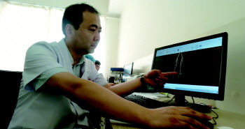 王旭通过电脑检查张泰山(化名)的下肢血管。