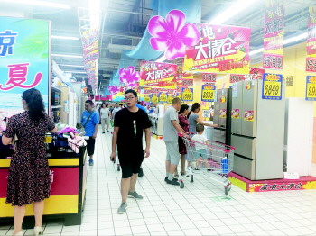 超市家电打出促销广告。 本报记者 樊舒瑜 摄