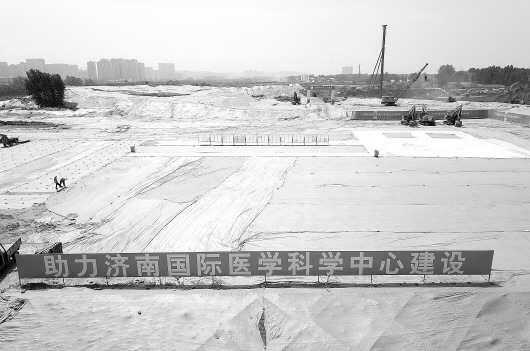 19日,济南西部刚刚开工的国际医学科学中心区域,部分工地上施工机械开始挖地基。 本报记者 周青先 摄