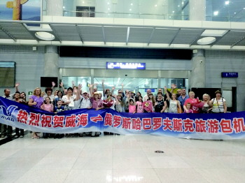 俄罗斯是威海第二大入境客源国。今年“哈巴-威海”旅游包机于7月25日至8月30日开通12个航班,约有600名来自俄罗斯哈巴罗夫斯克市及周边地区的游客搭乘包机来威海。