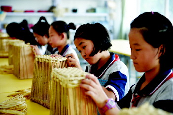 开设“草、塑编”课 为提高学生对文化遗产保护意识,传承和弘扬优秀传统文化,本学期,沂源四中开展2018年文化和自然遗产日系列活动。 (翟乃文 刘士春)