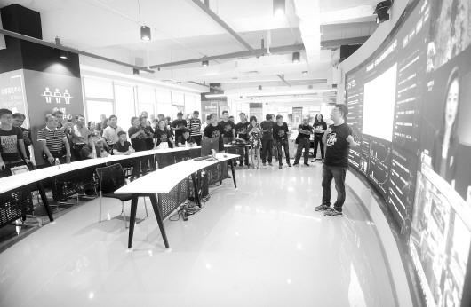 27日,全省的区县宣传部门代表观摩了壹点情报站的运作模式。 本报记者 左庆 戴伟 摄