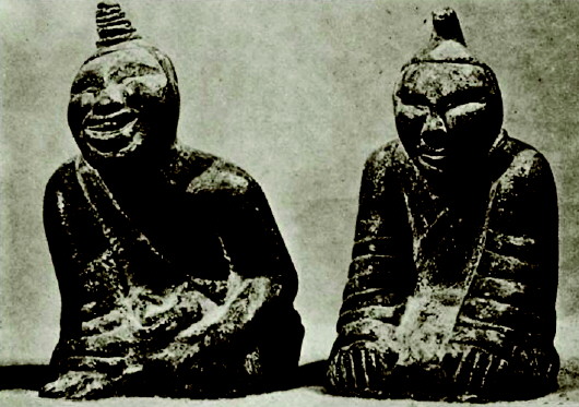 在长沙发现了一批青铜的胡人笑俑,现藏在旧金山的布伦达治馆中,时代当在周至汉代之间。请看这几位椎髻胡俑的满面笑容,在高高的颧骨间,满脸堆下笑来,笑得如此憨傻充沛,人间有什么开心的事令人绝倒如此?我每一瞻视,不禁万斛愁销,而且受其感染,笑不可抑,如山忧患一时俱空!
