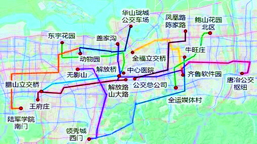 通勤快速巴士T21起止点:华山珑城公交车场-动物园。途经路段:鹊华大道、金舆大道、华山西路、历山北路、小清河北路、济泺路。服务功能:加强华山片区与历山路、纬二路走廊的联系,解决了华山片区居民的出行问题,提升了北部区域的公交服务。