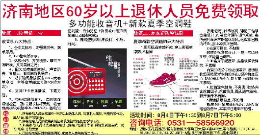 济南地区60岁以上退休人员免费领取