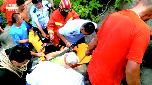 “下来的时候已经是上午10点30多分了,原本只需20分钟的下山路这次用了一个多小时。”刘庆国说,下山后,伤者被迅速送到山大二院进行治疗。