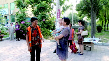 由于男孩年龄太小,除了一直哭喊着找奶奶之外,根本说不出别的话。看着男孩的脸热得通红,谭秋云就从清洁车上拿来一把扇子,她一边给男孩扇着扇子,一遍焦急地等待着男孩的家人。