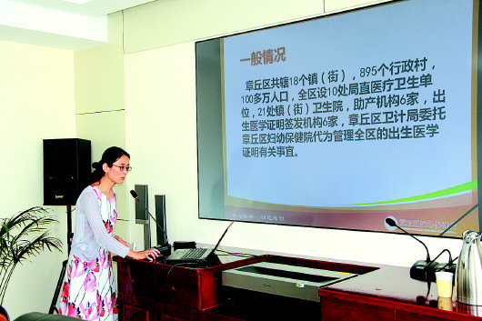 ◤工作人员汇报上半年妇幼健康工作。