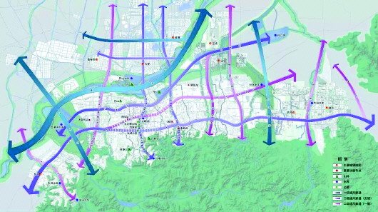 济南市通风廊道构建及规划策略示意图