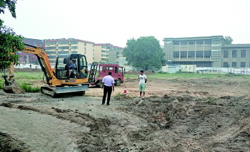 建设中的东关体育场。 本报记者 王雅楠 摄
