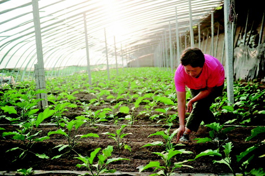 赵秀华家的大棚是全村受损失最轻的,如今积水已排出,茄子秧苗长势良好。 本报记者 戴伟 摄
