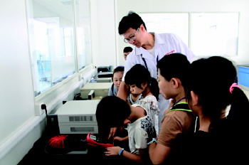 看到实验室一台台精密测量仪器和计量标准,小记者们表现出浓厚的兴趣,纷纷向计量工作人员询问,工作人员对大家提出的疑问进行了细致的解答。