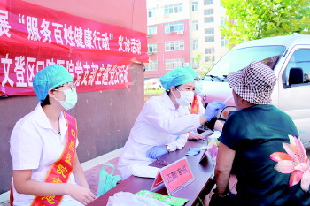 本报文登9月19日讯(通讯员 丁欣欣) 为更好的发挥党员先锋模范作用,丰富党员生活,增强党组织凝聚力。9月8日,区口腔医院组织党员专家到爬山街早市开展“服务百姓健康”主题党日义诊活动,为居民免费进行口腔健康检查,发放护牙手册,并给予健康指导。