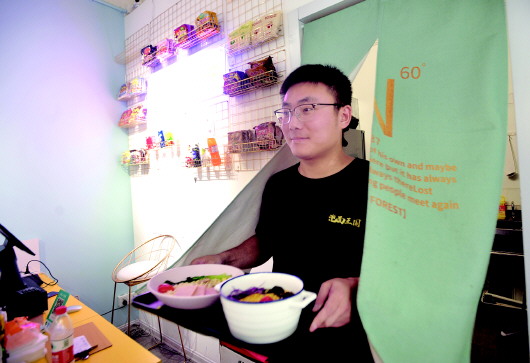 作为“90后”的他们,并没有被外在的表象所吓倒,他们通过“90后”独特的视角和市场分析认定,通过形式的创新和受众群体的消费观念,这个项目一定会给他们带来不错的回报。思想统一后,他们立刻开始着手打造他们的“泡面王国”。先是在济南旅游商业街宽厚里寻找铺面,接着发挥自身优势,从店面装修,到置办有特色的餐具,再到寻找世界各国的方便面,一个多月后,小店开门迎客。