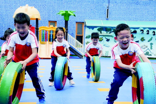 天桥实验幼儿园关注幼儿的身体健康发展,根据幼儿园现有的场地条件,合理规划时间、空间,实现了“小院落 大运动”全员健康教育实践。购置了大批适宜的体育器械,制定出了不同年龄段幼儿体能发展培养计划,并扎实开展丰富多彩的体育游戏和训练活动,保证幼儿每天户外两小时以上。孩子们的体育锻炼以每天清晨的“快乐跑酷”拉开序幕,动感的早操、创新的一物多玩、富有文化底蕴的传统户外游戏为幼儿提供了充足的户外游戏素材。同时,幼儿园还开设了快乐体操园本课程,并成功加入“全国快乐体操试点实验园”,孩子们在专业教师的引导下,通过多种大型器械的组合,在快乐的氛围中增强体质、塑造形体、培养品格和优雅气质。