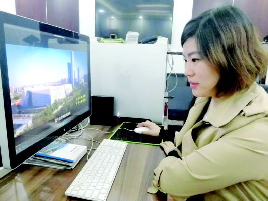 宋金叶正在对一段西部新城的宣传片进行反复检查。