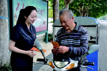 工作人员为市民讲解发放宣传资料。