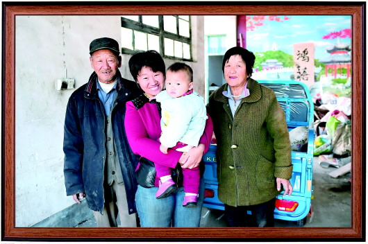10月10日,辛家庄的老索一家人正准备离开村子,一家人让记者在老房子里拍了张照片作为留念。