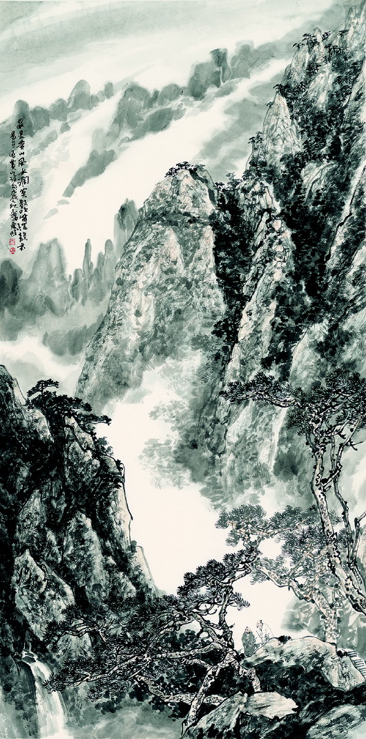 画家李庆杰被称为画界的画才和辩才,画才指他有深厚功底,作画构思巧妙,手法虚实相宜,而辩才一说是指他才思敏捷,善思考,能诙谐,让听者时有山重水复,柳暗花明之感。李庆杰的山水画于传统中汲取精华,以时代的新视角,展现出了一种当代笔墨的意趣。在此次展出的多幅山水作品中,他挥毫泼墨、勾勒渲染、直抒胸怀,他把自己置于山水之中,与挚友把酒对弈、抚琴听泉、隔溪赏苍翠,向观者传达了一股文人的清雅、高古之气,一种出世的品位与格调。