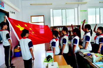 向国旗敬礼活动 为引导学生积极参与爱国主义教育活动,增强爱国意识,近日,沂源四中开展了向国旗敬礼活动,激发学生的爱国热情。(翟乃文 刘士春)