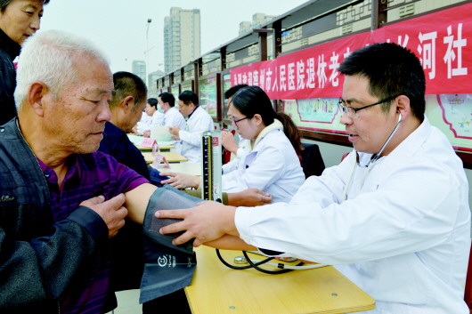 10月13日,德州市人民医院离退休党总支和医院工会共同组织医疗团队来到长河社区,与社区志愿者共同开展“情暖金秋 爱在重阳”义诊宣教活动,为社区老人和居民们送去健康和关爱。 本报通讯员 李梦娇 摄影报道