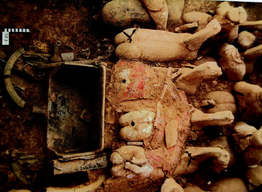 尽管危山王陵规模较大,但和已知的其他王陵相比,陪葬坑数量少,种类单调,并不符合一般王陵的特点。特别是在危山中部发现的陶窑中,有大量完整或残破的陶俑,窑中没有完工的陶俑被草草掩埋。因此我们认为,危山王陵整体布局还有许多残缺。