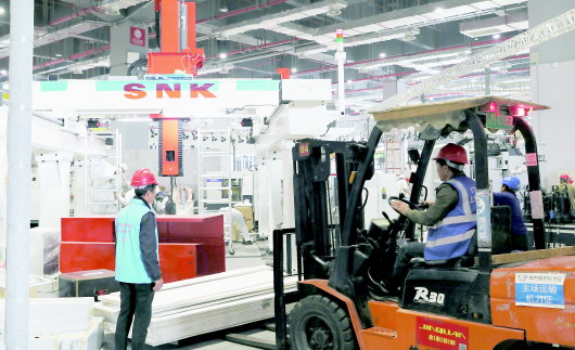 ▲展馆内展台搭建工人、展方技术人员以及安保消防人员在会场内紧张有序地工作,为即将开幕的进博会做最后的冲刺。新华社发