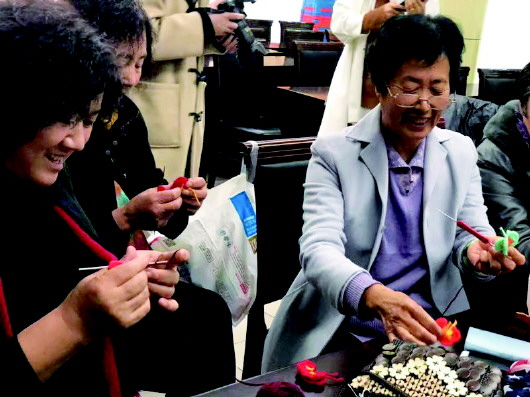 ▲在东营益道社会服务发展中心的编织室里,学员们正在有说有笑地上着课。