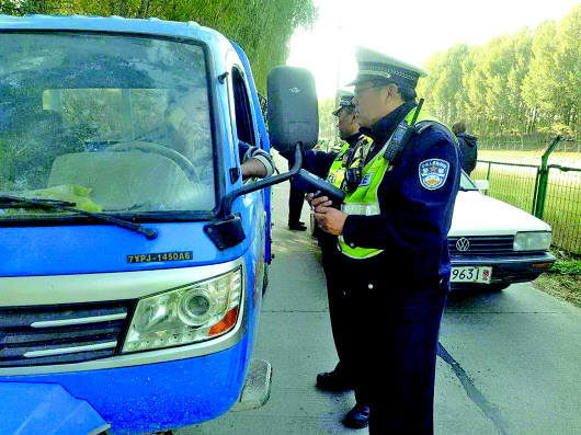 民警设点检查过往机动车。 交警供图